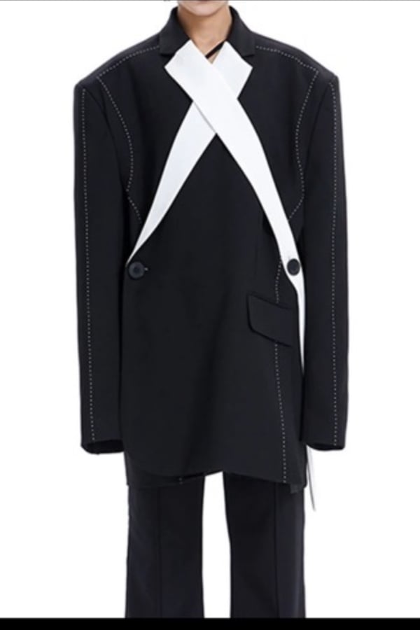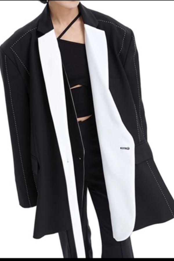 Black and white plus size contrast jacket