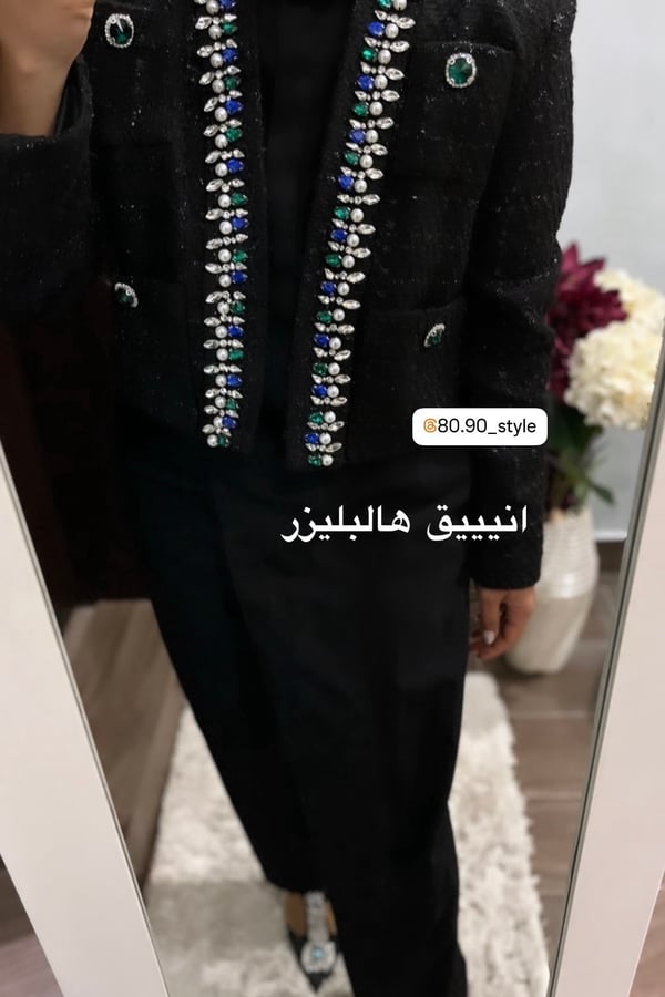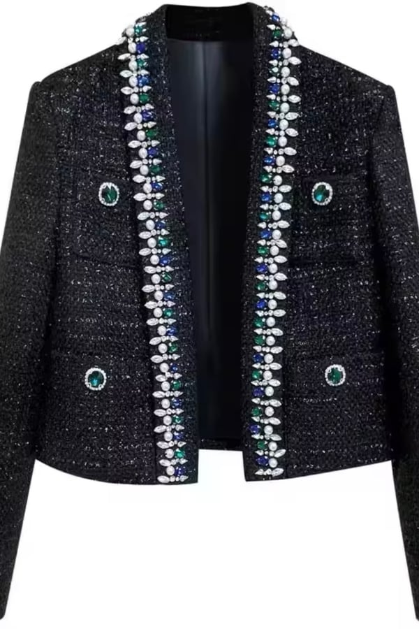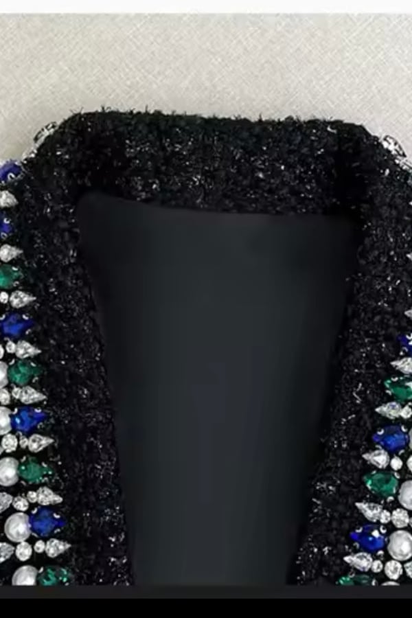 Black short blazer with green and navy blue crystals