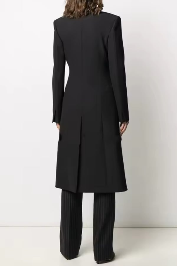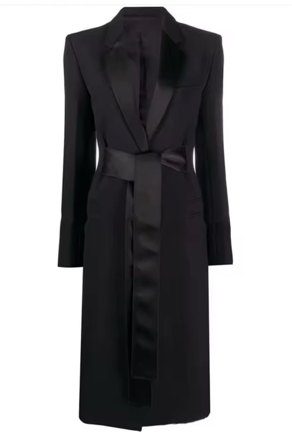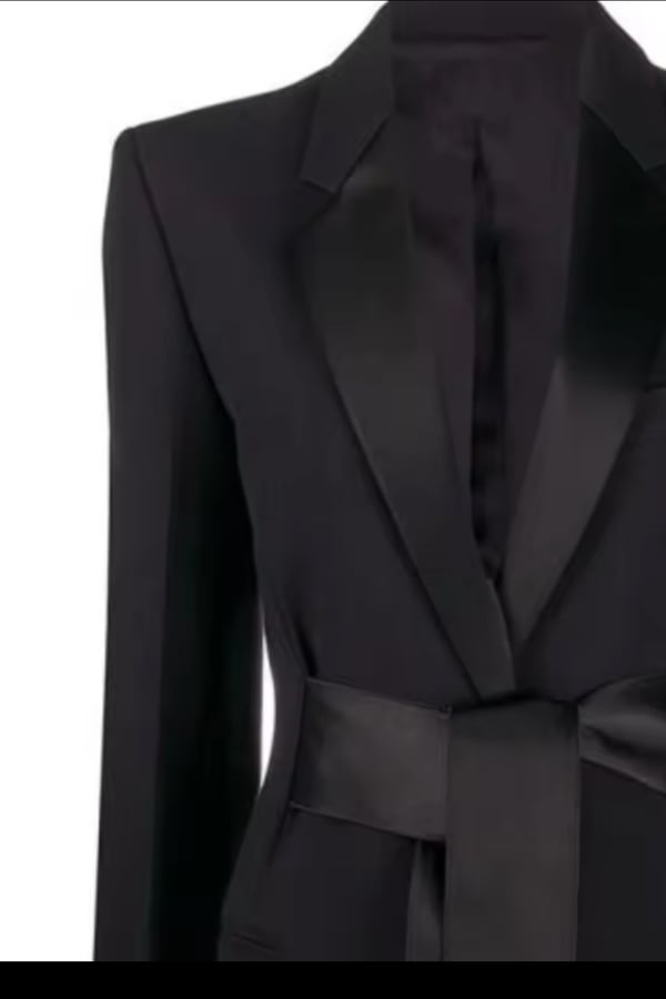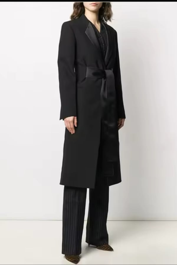 Long black blazer with satin belt