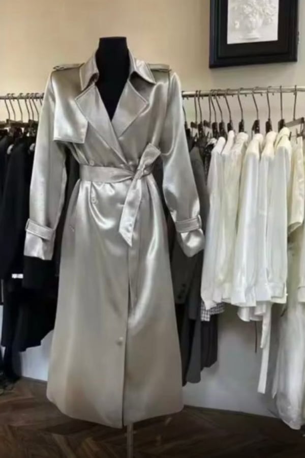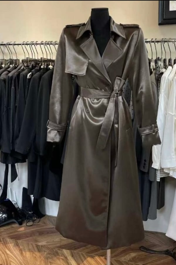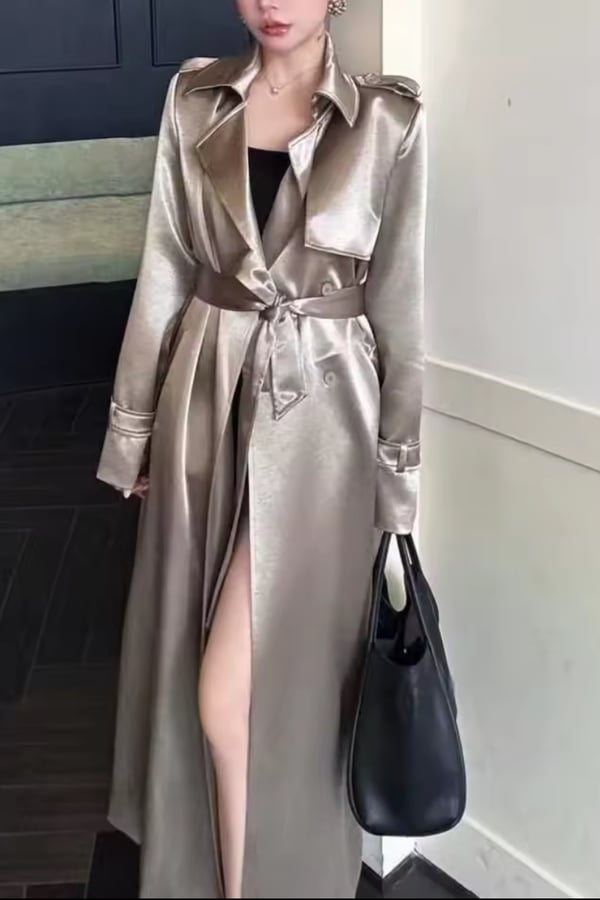 Long shiny trench coat