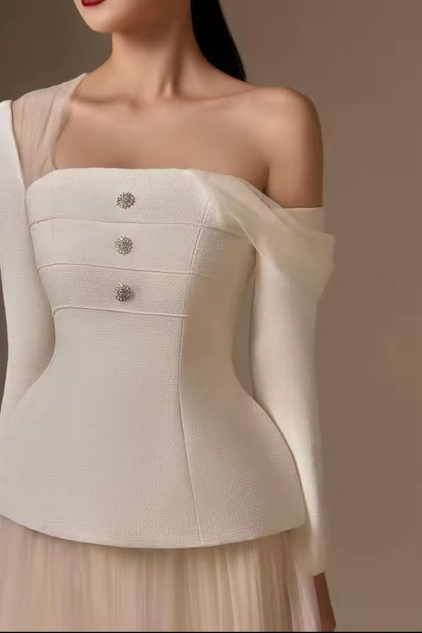 Set of top with open shoulders and crystal buttons