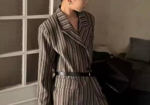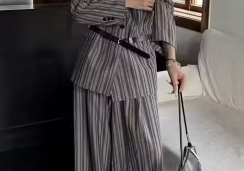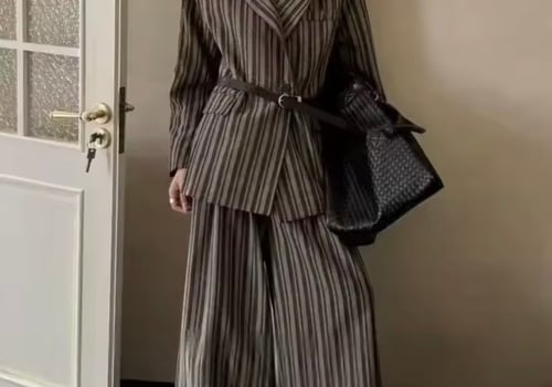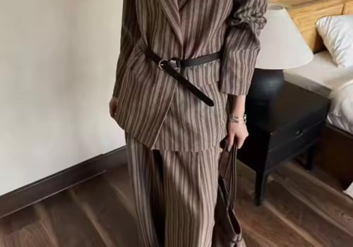 Striped set of wide leg pant and blazer with belt suitable autumn & winter