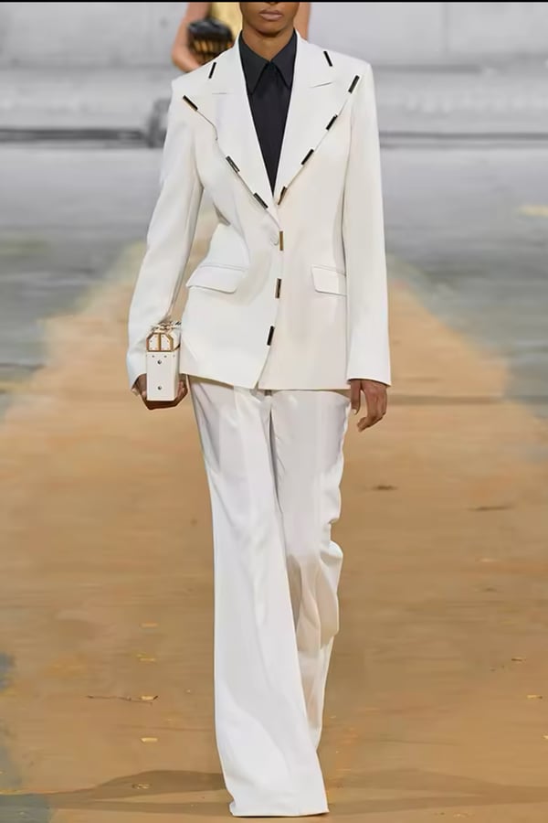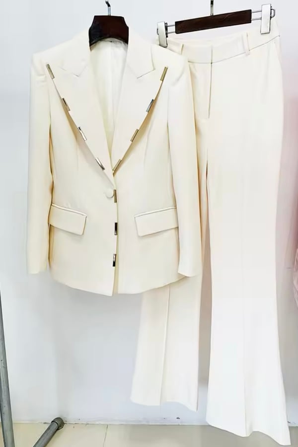 Elegant linen off white set blazer and ...