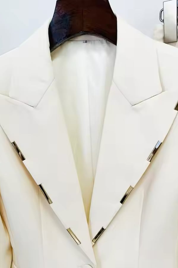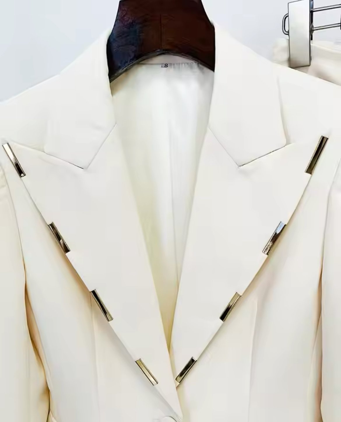 Suit with metal design on the collar