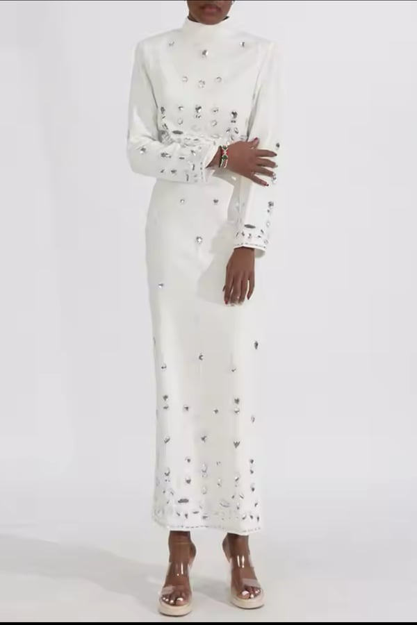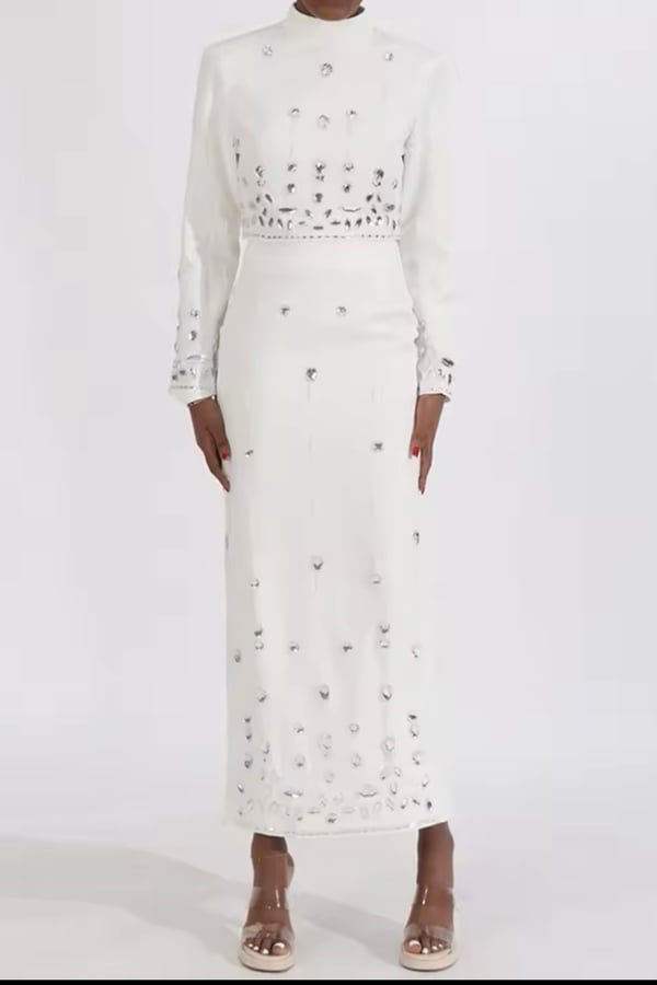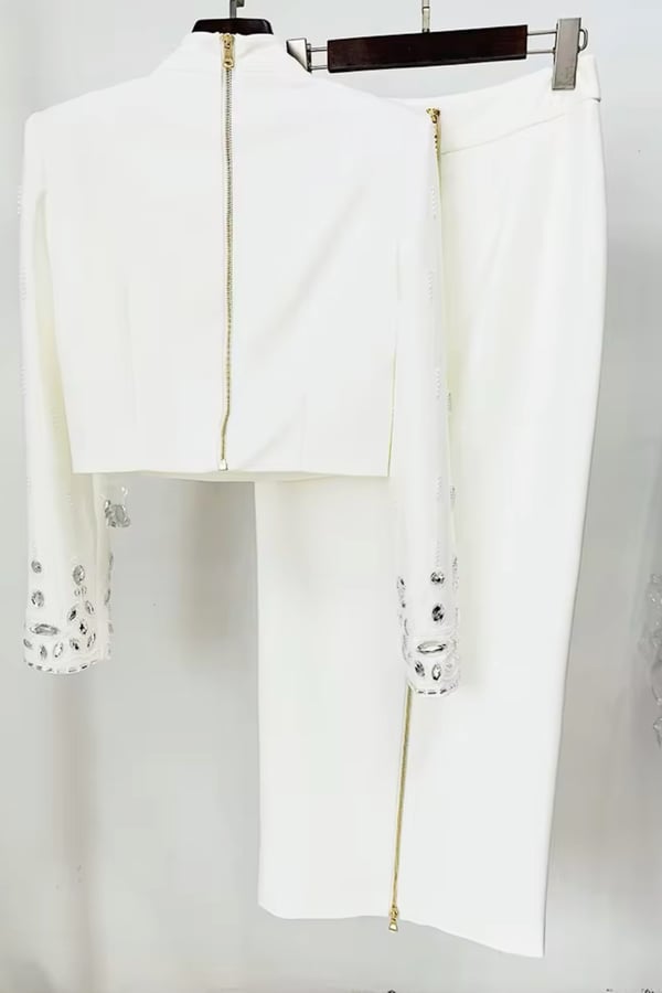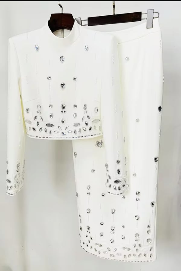 Set of stylish cropped top with crystals And skirt with crystal with long zipper in the back