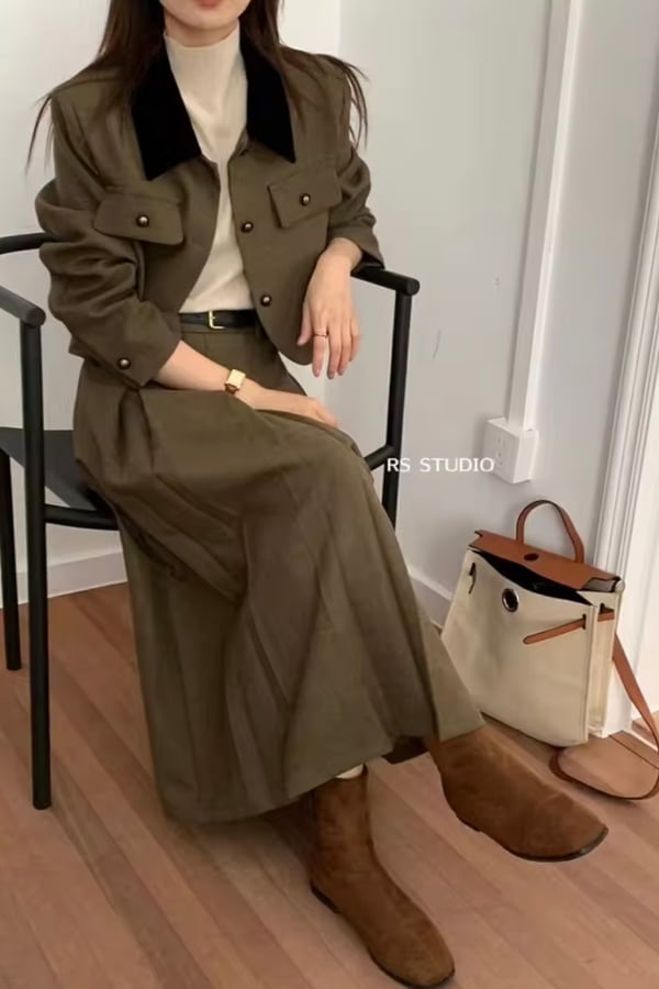 Two pieces set skirt with cropped jacket