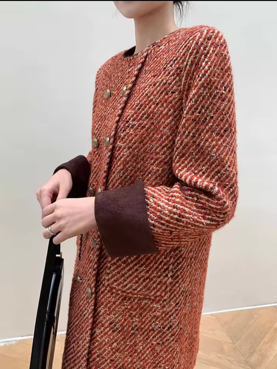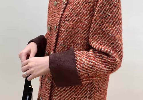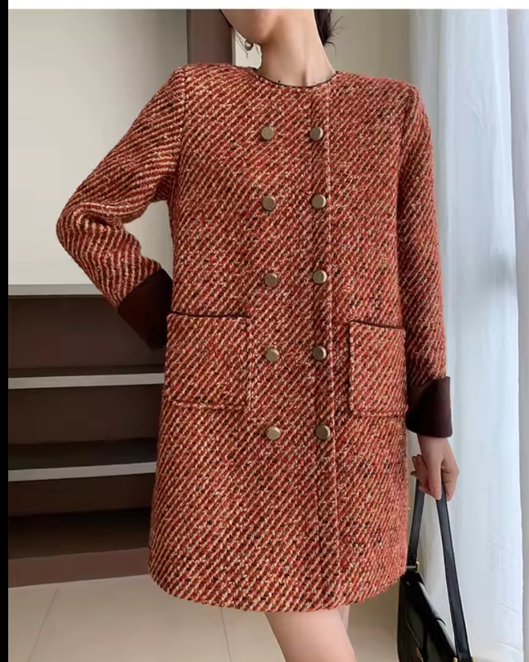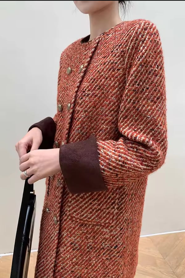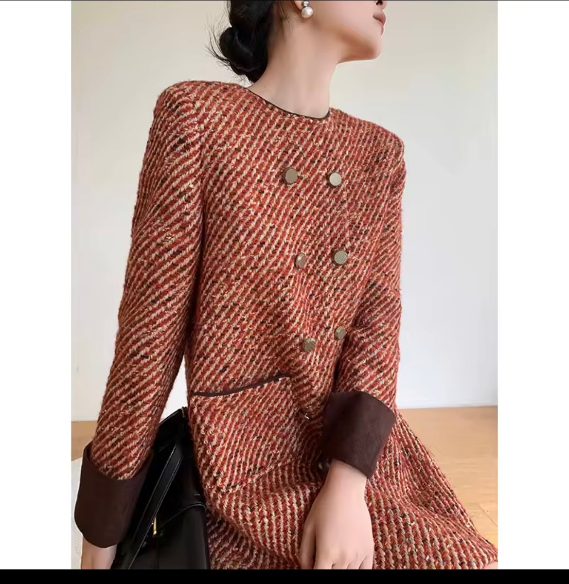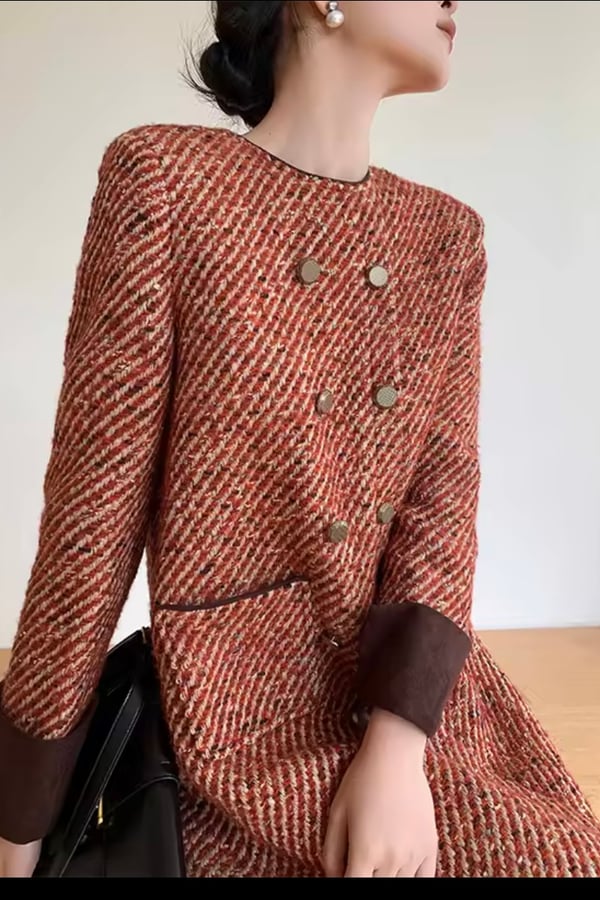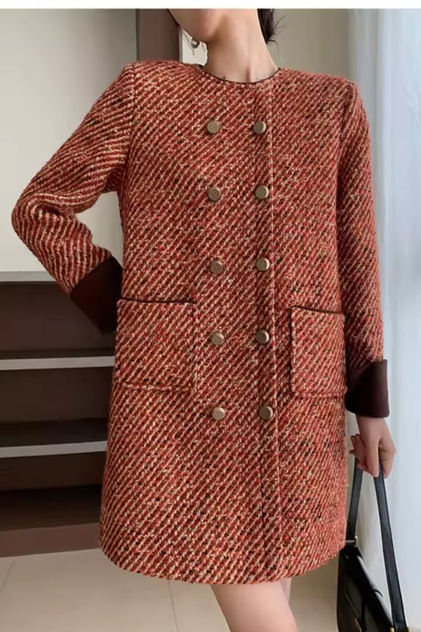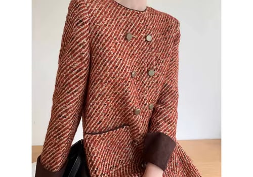 Short dress woolen blazer with multi buttons and brown cuffs